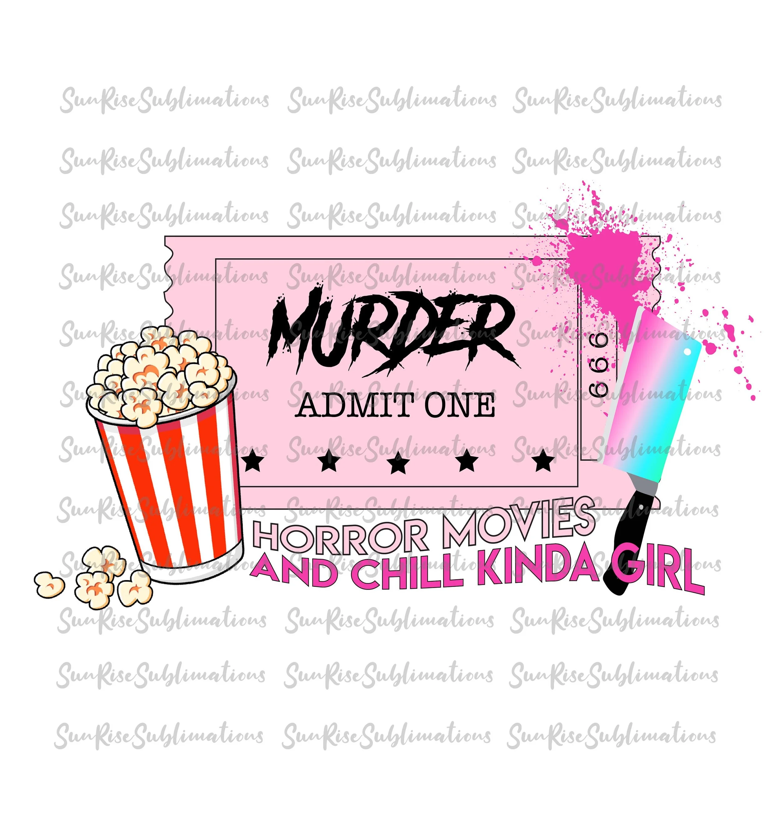 READY TO PRESS / Sublimation Print /Murder Admit One Ticket Stub/Chill Kinda Girl